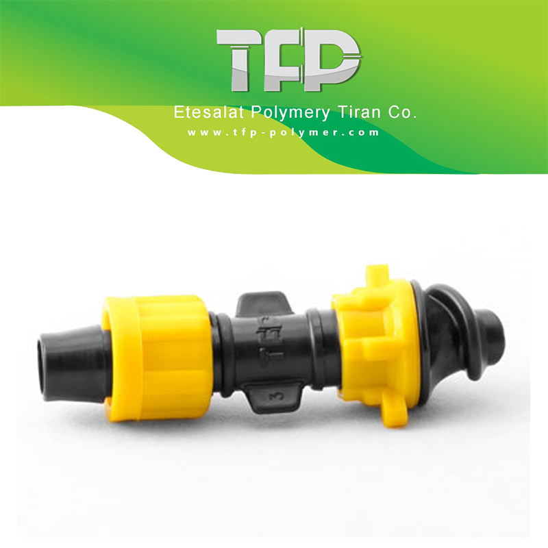 این اتصال تولید صنایع پلیمری تیران بسپار (TFP) است که برای اتصال های نوار های آبیاری به لوله های نخدار تاشونده پلی فِلَت و لِی فلت مورد استفاده قرار می گیرد. این شرکت یکی از معتبرترین شرکت های تولید کننده لوله و اتصالات کشاورزی با کیفیت در ایران است. مهره گیرنده نوار در این محصول از اتصال جدا نمی شود و در زیر چگونگی استفاده توضیح داده شده است.