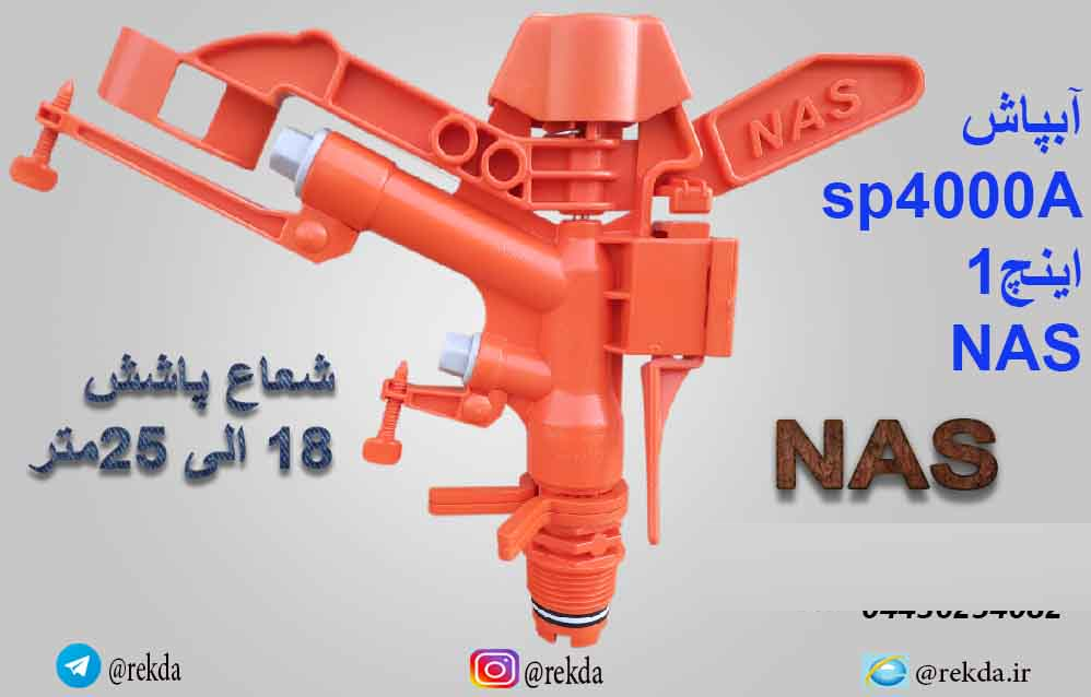 ? معرفی کوتاه : آبپاش تنظیمی NAS سایز ۴۰۰۰ (۱ اینچ) با شعاع پاشش ۱۸ تا ۲۳ متر، مناسب برای زمینهای وسیع و زوایای محدود. زاویه پاشش قابل تنظیم، مقاوم، بادوام، و دارای قطعات یدکی.