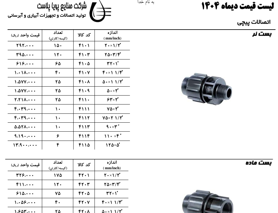 لطفا برای دریافتِ کاملِ لیستِ قیمتِ محصولات پویا پلاست، بر روی لینک زیر کلیک کرده و آن را دانلود کنید: